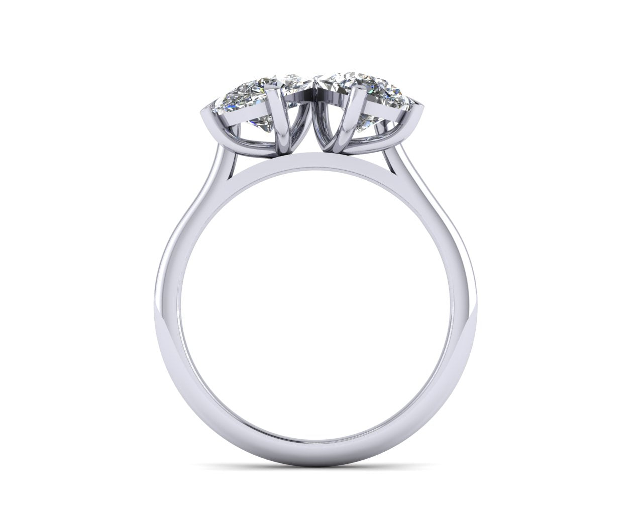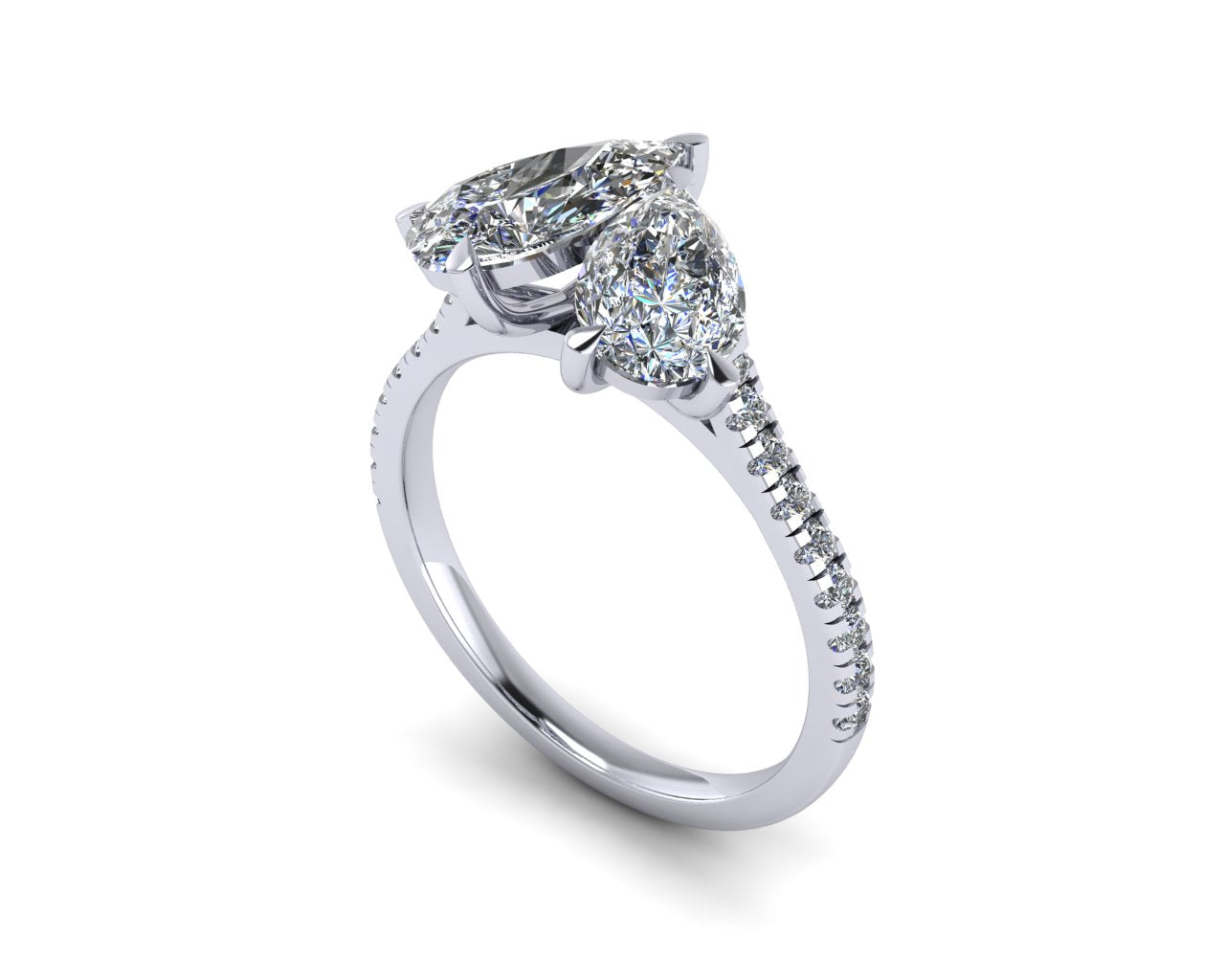 A striking symbol of balance and individuality. This bespoke design features two exquisite pear-cut diamonds delicately angled towards each other, creating a modern and fluid silhouette that catches the light from every direction.