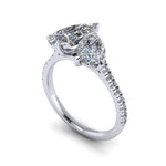 Pair of pear cut diamond on a white gold ring with diamond set pave band